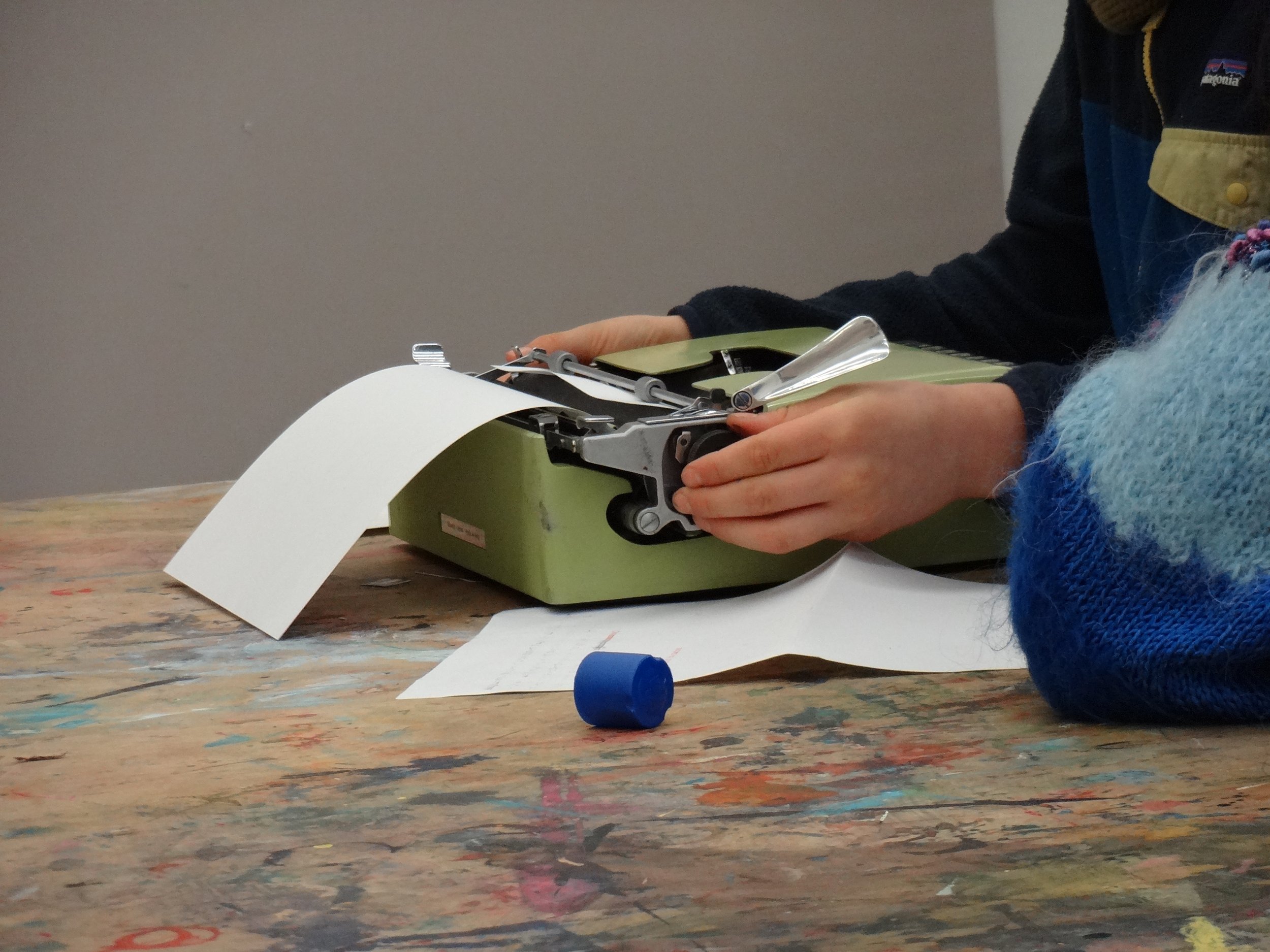 I think that when you give people the space and materials to do what they want, good things happen. When people feel free and can play unrestrained, they are their happiest. At least, that is how I was as a child and am now as an adult. In this lovely open studio discovered I like to draw on black paper with clunky, white materials. I found a new, thinner pink-tape that I like. An older man explained how to use the typewriter in the space, and helped a little boy play with it. The man’s drawing is included below.
